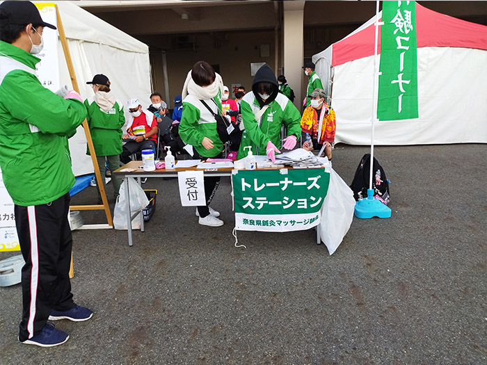 2022年 奈良マラソン施術奉仕活動 日時令和4年12月11日(日) 場所ロートフィールド奈良 内容ランナー競技後のアフターケア(マッサージ・鍼灸・テーピング)及び指導 参加者会員外含む24名 来場者施術・指導を受けた人数 152名