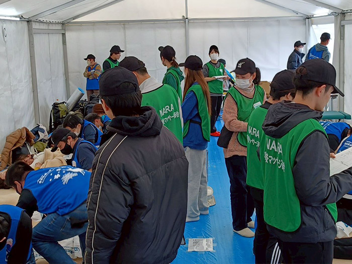 そのような中、有資格者21名、鍼灸専門学校の学生21名、合計42名の皆さまにボランティアとしてご協力いただき、体制を整えて対応することができました。
